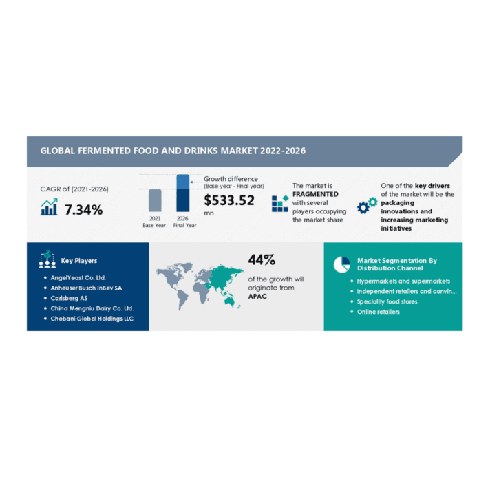 The packaging innovations and increasing marketing initiatives are driving the fermented food and drinks market growth. Various players are differentiating their products from that of their rivals by using innovative packaging. In addition, many manufacturers are choosing environment-friendly alternatives such as green polyethylene made from sugarcane. These packaging innovations help in broadening the appeal of brands among retailers and consumers. During the forecasted period, more players are expected to launch products with innovative packaging in order to entice consumers.